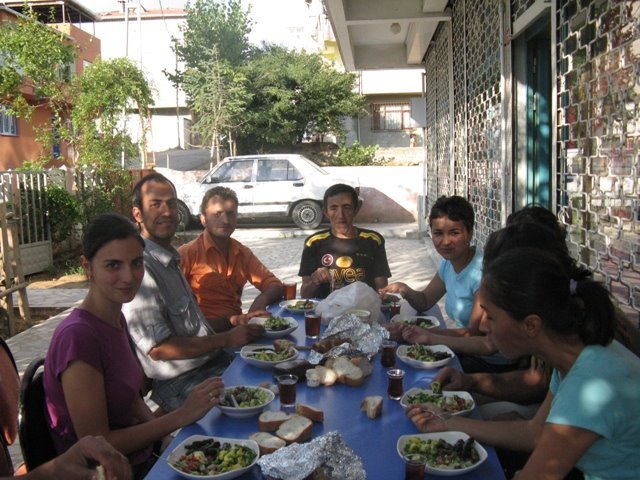 3 Ağustos Pazar günü Tuzla’da 14 kişinin katılımıyla her hafta yaptığımız gibi kooperatifin bahçesinde, öncelikle yaprak sarması, patates salatası ve kekten oluşan yemeğimizi yedik. Arkasından da bazen bağlama bazen de gitar eşliğinde hep birlikte türküler söyledik.